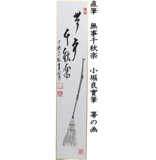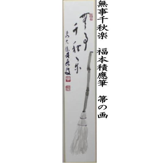 〇 [Tea utensils/tea ceremony tools, short poems, inscriptions] Handwritten, "The final performance is safe and sound, a broom painting" or "The winter peony painting, a delayed blooming mountain winter flower painting" by Fukumoto Tsuneo