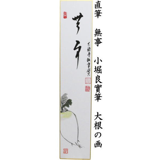 〇【茶器/茶道具 短冊画賛】 直筆 無事 小堀良實筆 大根の画