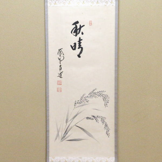[Tea utensils/tea ceremony tools hanging scroll (kakejiku)] One-line painting inscription: Autumn clear weather, by Masamichi Maeda, painting of ears of rice
