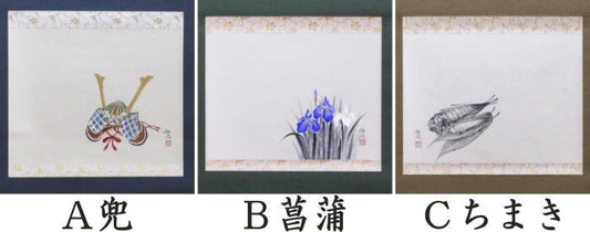 [Tea utensils/tea ceremony tools hanging scroll (kakejiku) Boys' Festival] Horizontal scroll Painting of helmet or iris or chimaki (rice dumpling) Painted by Takuya Okuda