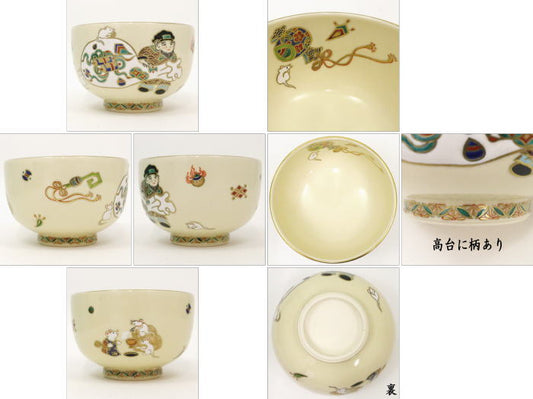 [Tea utensils/tea ceremony tools Matcha tea bowl] Color painting Okuninushi no Mikoto and child Seikanji kiln