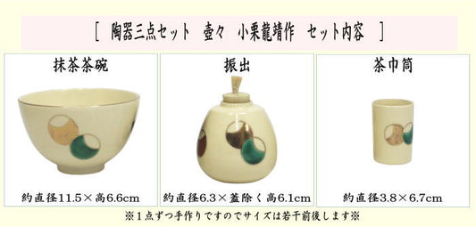 【茶器/茶道具 茶箱用三点セット/陶器三点セット(陶器三つ揃)】 壺々 小栗龍靖作 (抹茶茶碗・振出・茶巾筒) (茶箱用3点セット・陶器3点セット・陶器3つ揃・壷々 壺壺 壷壷 つぼつぼ)