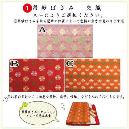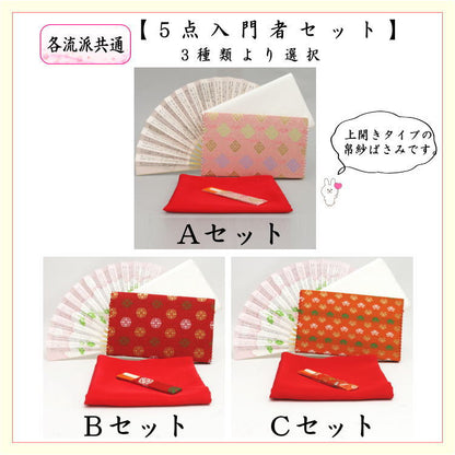 [Tea utensils/tea ceremony tool set for tea ceremony beginners] 5-piece beginner's set (two-fold silk cloth scissors, clear case included) Pink, red, or orange, outer box