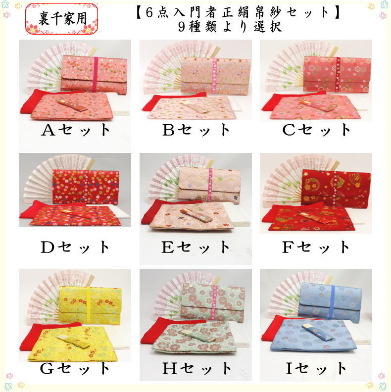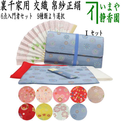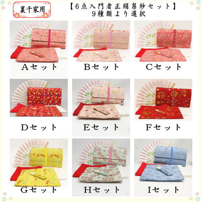 〇 [Tea utensils/tea ceremony utensil set for beginners/lessons/practice] Renewal 6-piece Urasenke beginner's set (with pure silk cloth and clear case)