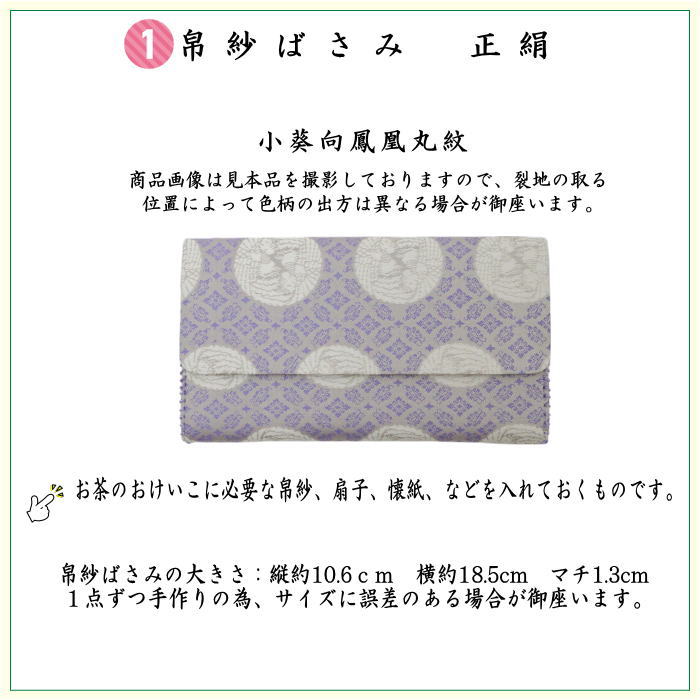 1.帛紗ばさみ正絹:約18.5×10.6×1.3cm