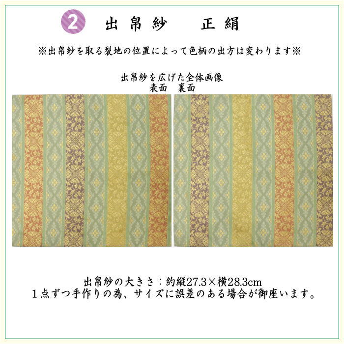 2.出帛紗正絹:約縦27.3×横28.3cm