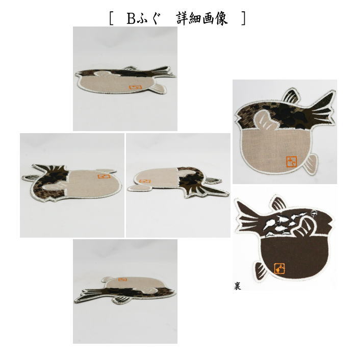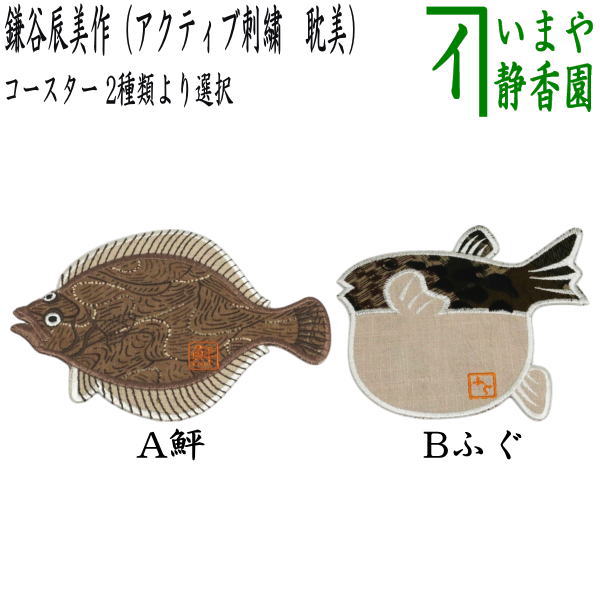 【コースター】 鮃(ひらめ)又はふぐ 鎌谷辰美作(アクティブ刺繍 耽美) 2種類より選択