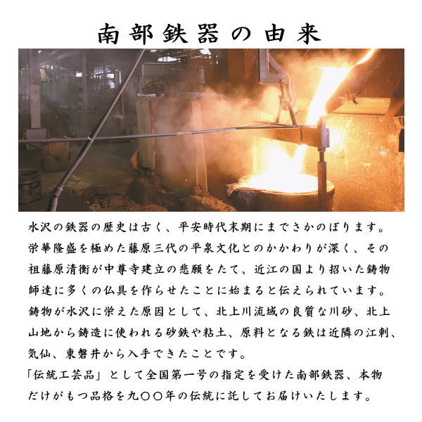 ●Origin of Nanbu Ironware...The history of ironware in Mizusawa is long, dating back to the end of the Heian period.