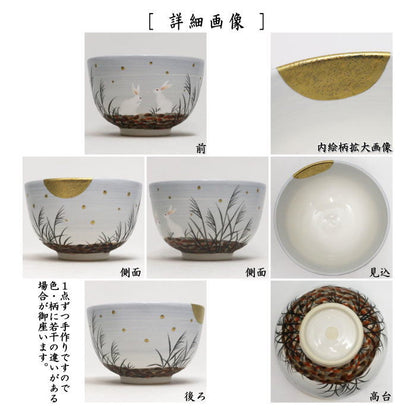 【茶器/茶道具 抹茶茶碗 お月見】 白釉 夕べ兎 山岡善高作