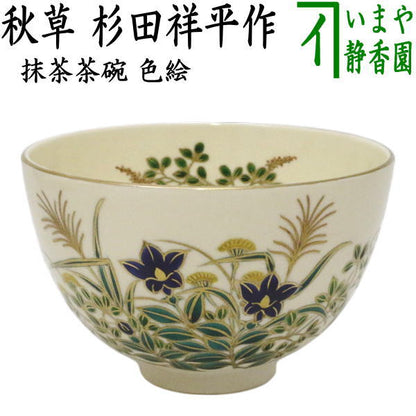 【茶器/茶道具 抹茶茶碗】 色絵茶碗 秋草 杉田祥平作(清閑寺窯)