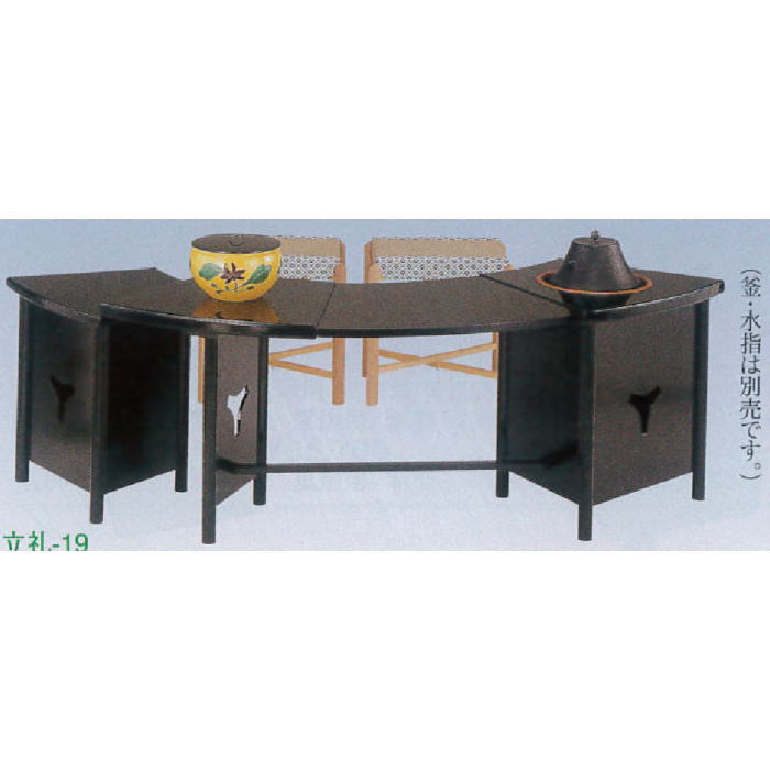 製造中止【茶器/茶道具 立礼棚】 末広棚 即中斎好写し 椅子2客付 硬化塗天面のみ 表千家用 組立式