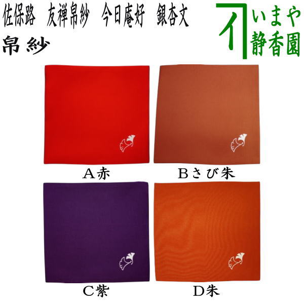 【茶器/茶道具 帛紗】 佐保路 友禅帛紗 今日庵好 銀杏文[鴨脚文(いちょうもん) 赤又はさび朱又は紫又は朱 4種類より選択 (服紗・袱紗・ふくさ)