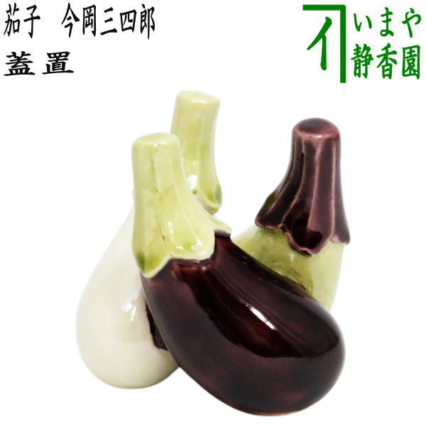 【茶器/茶道具 蓋置】 茄子(三つ茄子) 今岡三四郎 (3色色絵茄子) (なすび・ナス・三茄子・三ツ茄子・三っ茄子・三ッ茄子)
