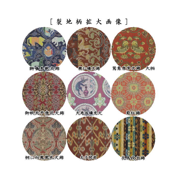 【茶器/茶道具 古帛紗】 正絹 龍村美術織物裂使用 獅噛鳥獣文錦又は韓仁繍文錦又は鴛鴦唐草文錦又は御軾天平唐花文錦又は天寿国繍兎文又は蜀紅錦又は桐に向鳳凰丸文錦又は太子間道又は花鳥段文錦