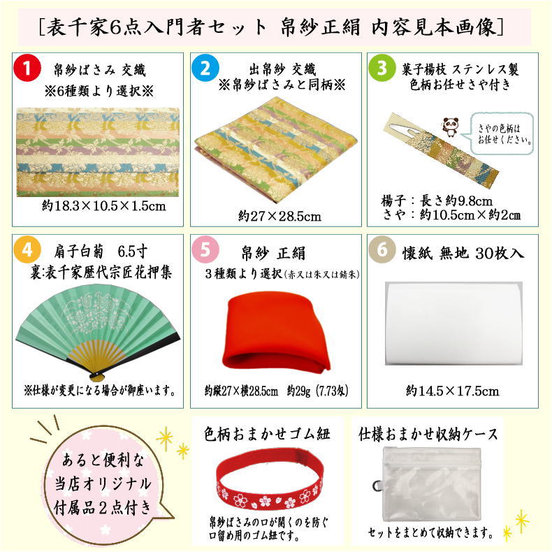 【茶器/茶道具セット 茶道初心者用】 リニューアル 6点表千家入門者セット (帛紗正絹 クリアケース付)