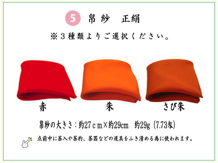 5.帛紗 正絹 3種類より選択(赤又は朱又は錆朱)