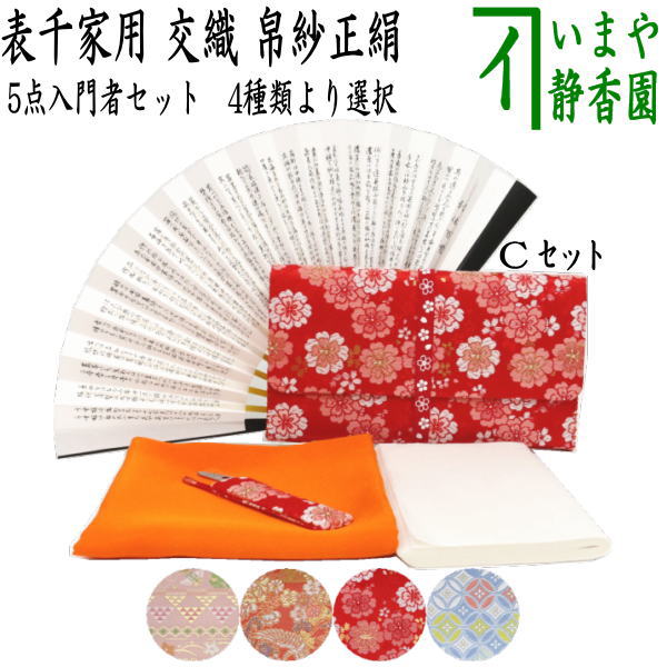 【茶器/茶道具セット 茶道初心者用】 5点表千家入門者セット (表千家:正絹帛紗 6.5寸扇子 クリアーケース入物付)