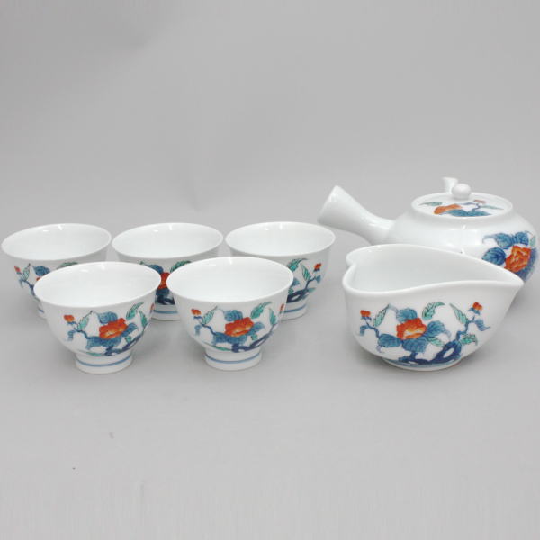 【煎茶道具 煎茶器】 煎茶器セット 有田焼き 岩牡丹 畑万作 (湯のみ 5客・急須・湯さまし)