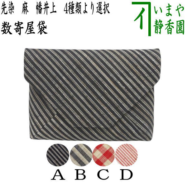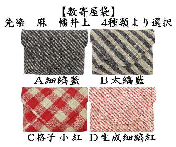 【茶器/茶道具 数奇屋袋(数寄屋袋)】 麻数寄屋袋 先染め 細縞藍又は太縞藍又は格子 小 紅又は生成細縞紅 幡井上製 4種類より選択