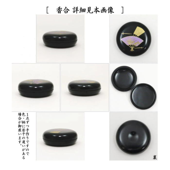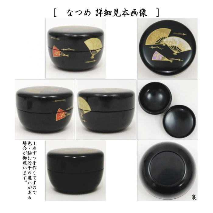 【茶器/茶道具 茶箱用三点セット】 塗 三点セット 扇面蒔絵 黒 (棗・香合・茶筅筒) 中村宗悦作 木製 茶箱用3点セット