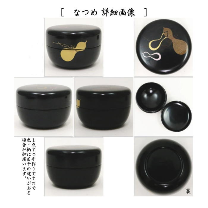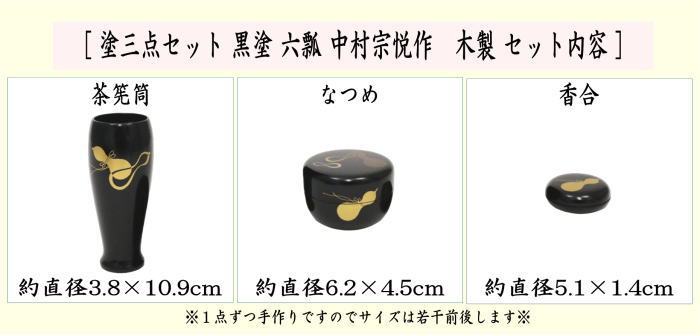 【茶器/茶道具 茶箱用三点セット】 塗 三点セット 黒塗り 六瓢 (茶筅筒・棗・香合) 中村宗悦作 木製 茶箱用3点セット