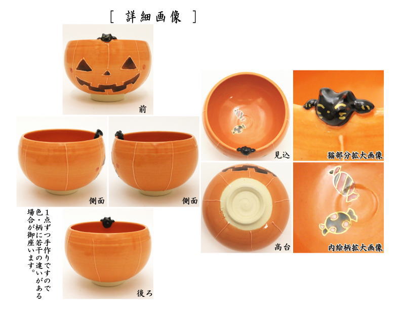 【茶器/茶道具 抹茶茶碗】 ハロウィン南瓜 縁黒猫 東山深山作
