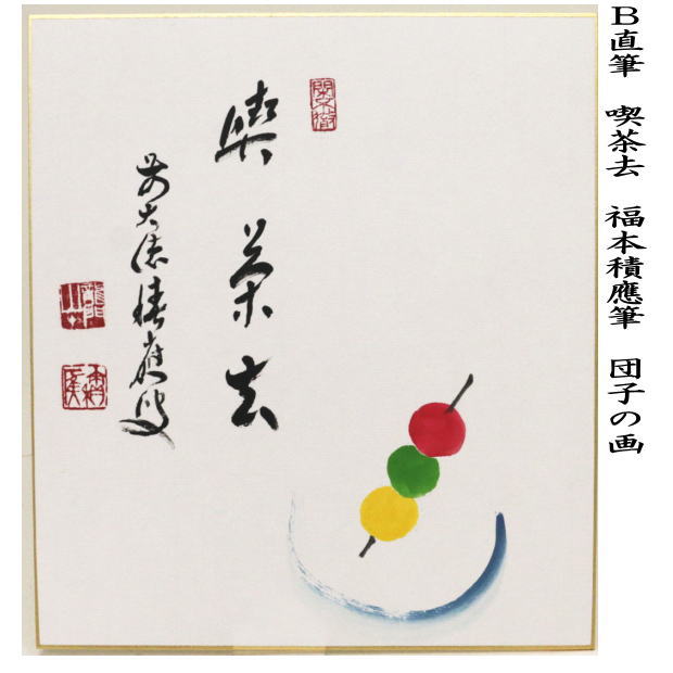 【茶器/茶道具 色紙画賛】 直筆 喫茶去 福本積應筆 団子の画(花より団子)