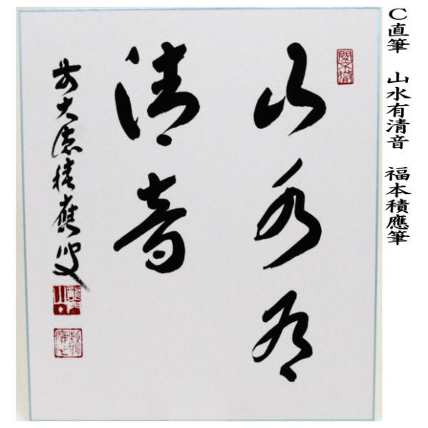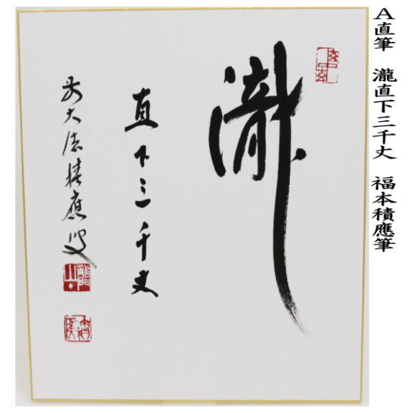 【茶器/茶道具 色紙】 直筆 瀧直下三千丈又は行雲流水又は山水有清音又は一雨潤千山 福本積應筆