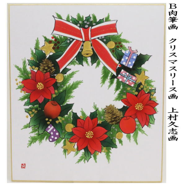 【茶器/茶道具 色紙 クリスマス】 肉筆画 クリスマスリース画 上村久志画 2種類より選択